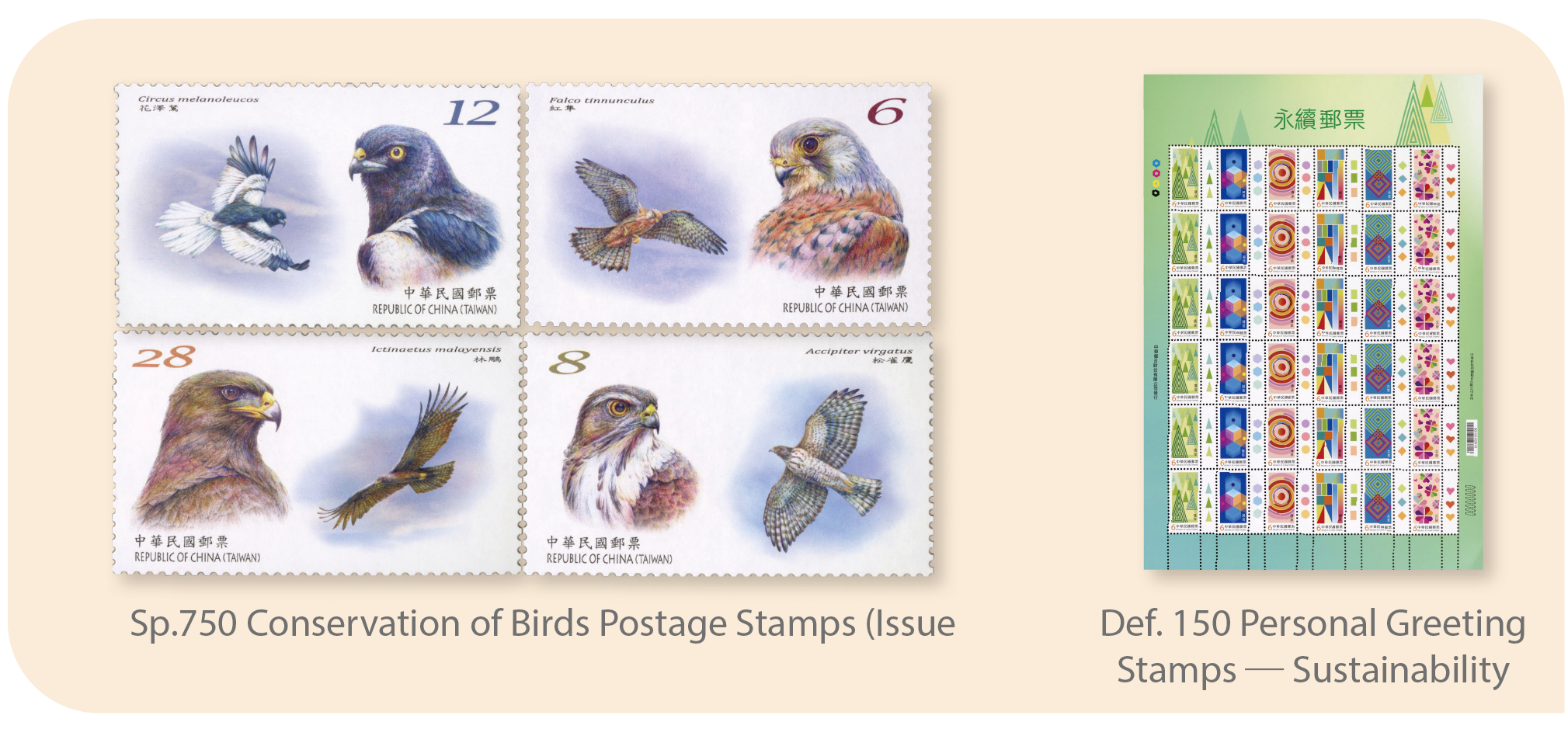 To arouse the public’s care about ecology and attention to nature conservation and sustainable development, Chunghwa Post has issued multiple sets of ecology-related themed stamps and postage labels. Chunghwa Post issued the Conservation of Birds Postage Stamps (Issue of 2024) and also the stamps designed around the concepts of sustainability.
